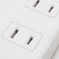 続いてコンセント側を見てみましょう。2口なのでサイズのわりに少ないですが、差し込み口にシャッターがあり、ゴミが入りにくいようになっているのが良いところ。わりと作りがしっかりした電源タップだという印象です。