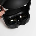 こちらが待ちに待ったQuest Proの本体。Quest 2の真っ白な筐体に対して、Quest Proは高級感を感じるブラック一色の筐体となっている。またQuest 2のように没入感を意識したHMDとは異なり、着用したままでも視界を完全には遮らない仕様だ。