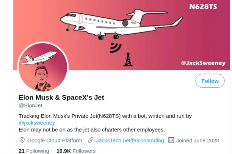 凍結された @ElonJet は2020年にフロリダの大学生ジャック・スウィーニー氏が開設した、マスク氏の自家用ジェット機の飛行データを取得してツイートするアカウント。