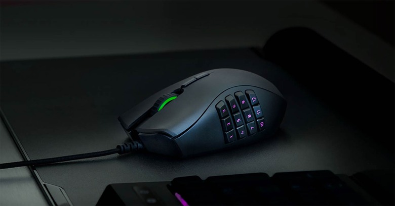 Naga Trinityは、有線式の右手用ゲーミングマウス。最大の特徴はマウスの左側、右手親指で操作するボタン部分がプレート式の着脱機構となっている点です。3種類のサイドプレートが同梱されており、プレイするゲームに合わせてサイドボタンの数を2/7/12に変更できます。12ボタンのプレートを装着した場合は、19個のカスタマイズ可能ボタンを備えることになります。