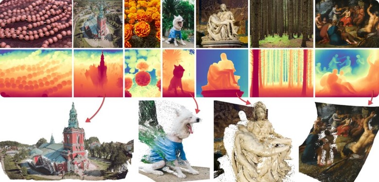 この研究は、「単眼深度推定」という技術に関するものです。単眼深度推定は、一枚の写真からその場所の奥行きや立体感(深度マップ)を計算する方法です。