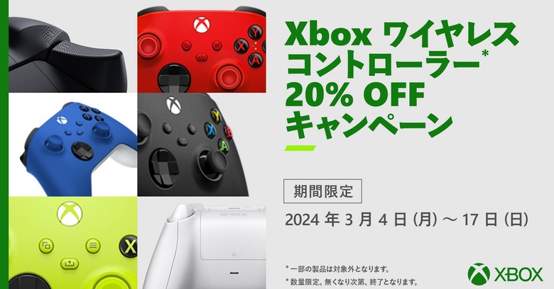 2024年3月4日から3月17日までの期間限定でXbox ワイヤレス コントローラーが20%オフになるキャンペーンが実施されています。