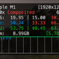 一方で、M3世代とM1とではCPUの速度アップ以上にGPUコアの性能向上が大きく、ベンチマークの数字が上がっているのもわかる。