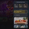 Google TV 側の進化としては、新たにGoogleホームパネルを搭載。セキュリティカメラの映像を確認したり、スマート照明の調光で部屋を暗くするといったことが素早くできるようになりました。
