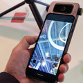 この製品は中国のSHIXIが開発した「ONAIR AiBoo-V188」というデバイス。正面から見たスタイルは、スマートフォンの上に謎のでっぱりがあるといった具合です。