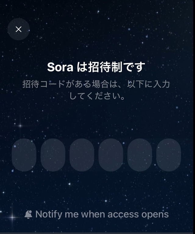 米国とカナダではスタートしていますが、日本を含むそれ以外の国ではまだ。さらに、Soraのアカウントを既に持っているユーザーでも招待コードが必要となっています。
