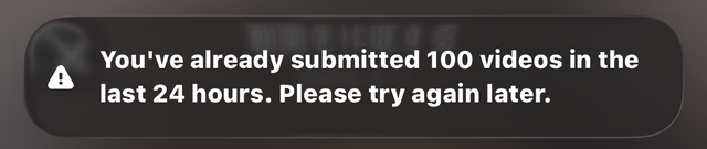 しかしここでOpenAIからタオルが投げ込まれます。「24時間で100本以上のビデオを生成しているからこれ以上は無理ね。また時間をおいてやってみて」という警告が出て、いったん中止です。