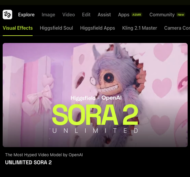 AIアグリゲーターは、自社AIモデルのあるなしに関わらず、複数のAIモデルをユーザーが利用できるようにするサービスで、そのためのUIをWebサービスとして提供しているところです。最近ではHiggsfieldなどが人気のようですね。Higgsfieldでは期間限定でSora 2使い放題キャンペーンを実施しているようです。