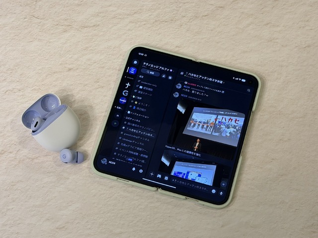 直接、Pixel 10 Pro Foldの評価というわけでもないのですが、2ペイン対応アプリが、私が最後に(真面目に)フォルダブル試したときから、だいぶ増えましたね。Outlook、Discord、Teams、LINEなど、仕事でもプライベートでも使う主要アプリの多くが左右にリストと本文を分けて表示できるようになっていて、これはストレートに戻れなくなるほど魅力的だなと。SlackやFacebookメッセンジャーは未対応ですが、メールやスケジュール管理、チャットを同時にこなす作業がPCなしでも快適にやれます。どうしても移動中に出ないとならないオンライン会議で資料とか出てくると、1画面スマホでは横にしても見えないですが、Pixel 10 Pro Foldだと開けば見える……ということがまさに先ほどありました。