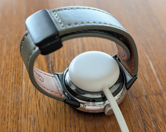 初代からベルトはずっと後方互換を保ってきましたが、充電方式はついに変わって、これまでの腕時計の背面に磁石で吸着させる円盤状の「磁気充電ケーブル」から、腕時計を横向きに設置するドック型の「充電ホルダー」になりました。これ、個人的にはとっても嬉しいことです(あとで説明しますね)。