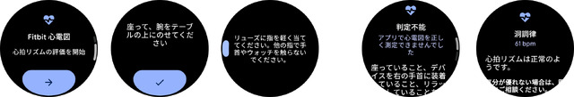 ▲Fitbit心電図に挑戦するも私は「測定不能」に(右端は夫が成功したケース)