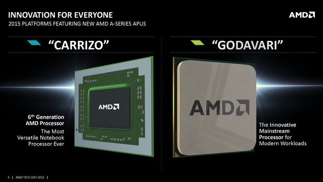 ▲2015年発表のAPU。開発コードネーム「Carrizo」「Godavari」(またはKaveri Refresh)。当時のデスクトップPC向けAPUのGPUは理論性能値が既に約1TFLOPSに到達していた