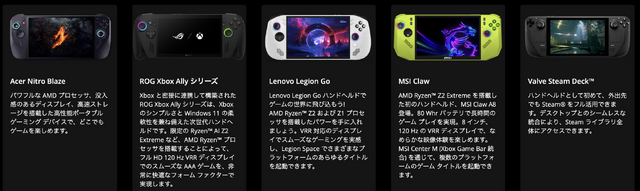 この要望に対し、フットワークの軽い世界のPCメーカー達が反応する形で、時折々のAMD製の最新APUを搭載したWindowsベースの携帯型ゲーミングPCを次々に開発するようになり、現在に至る。