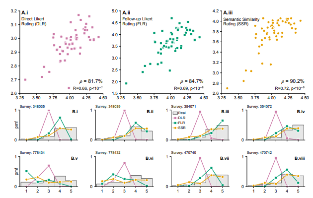 パーソナルケア製品に関する57の消費者調査(計9300人の実回答)を用いた検証では、この手法は人間の再テスト信頼性の90%を達成し、実際の回答分布との類似度も0.85以上という高い精度を示しました。