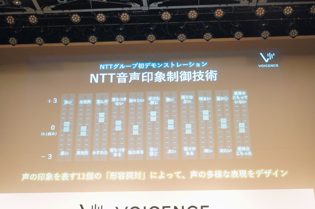 ▲声を11の要素に分解して、パラメーターを調整していくことで印象を制御するNTTの技術を活用