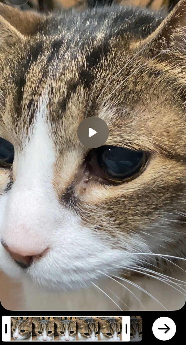 登録するにはアップロードした動画の中から数秒分を範囲選択します。声も登録したかったので、鳴き声が入っているところを短く編集してアップロードしました。