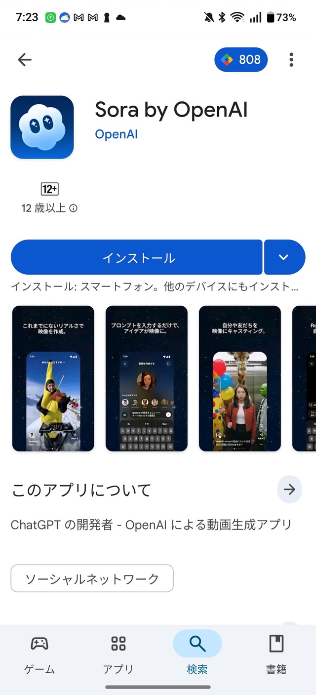 OpenAIはショート動画制作投稿SNSのSoraアプリAndroid版「Sora by OpenAI」を、日本を含む7カ国で公開しました。真実は一つもないAI動画が作り放題となりました。