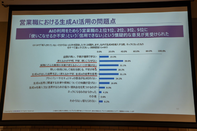では、なぜ利用が進まないのでしょうか。営業職がAI利用をためらう理由としては、
