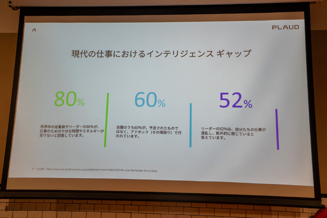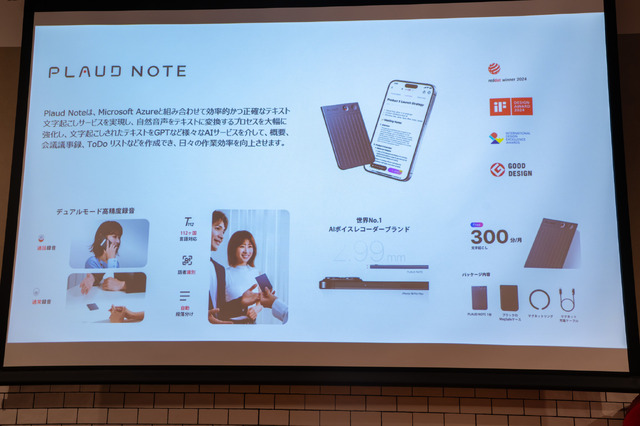 鈴木氏は、こうしたデータを踏まえたうえで、「業務効率化を図るうえで、さまざまなギャップが現場に存在している」と述べ、PLAUDは生産性とパフォーマンスを高める、もっとも信頼できるAI業務パートナーとして活用できるよう製品開発を行っているとのことです。