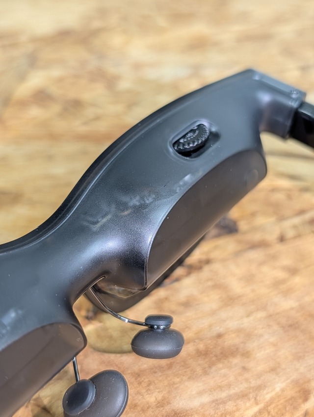 実際、普段はメガネをしないものの実際は軽い近視という知人にレビュー用のVITURE Luma Ultraを体験してもらったところ、ダイヤルでピントをあわせて画素までクッキリ見える大画面に驚いていた例もありました。(サングラス型ディスプレイは一般に2m~程度の距離に像を結ぶため、スマホやPCモニタよりも遠くの視力が重要になる)