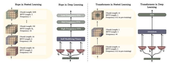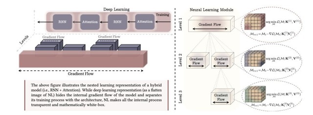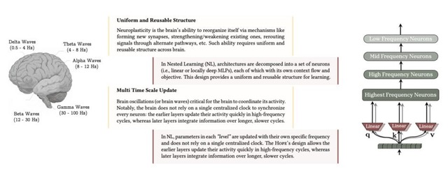 人間の脳が継続的に学習できる理由の一つは、脳の各部位が異なる時間スケールで情報を処理・更新している点にあります。ある部位は瞬時に反応し、別の部位はゆっくりと知識を定着させます。Nested Learningは、機械学習モデルとその訓練プロセス全体を、このような異なる更新頻度を持つ最適化プロセスの入れ子構造として捉え直すことにあります。
