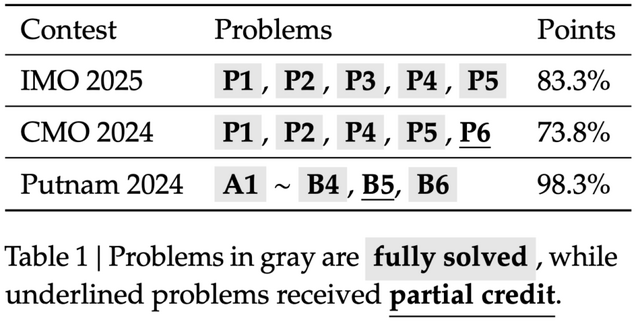 性能面では、IMO 2025とCMO 2024で金メダルレベルのスコアを達成し、Putnam 2024では120点中118点を獲得しました。Google DeepMindのDeepThinkモデルをIMO-ProofBenchベンチマークで上回る結果も出ています。