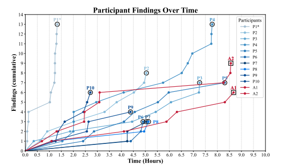 ▲人間の専門家とAIエージェントの脆弱性発見ペースの比較