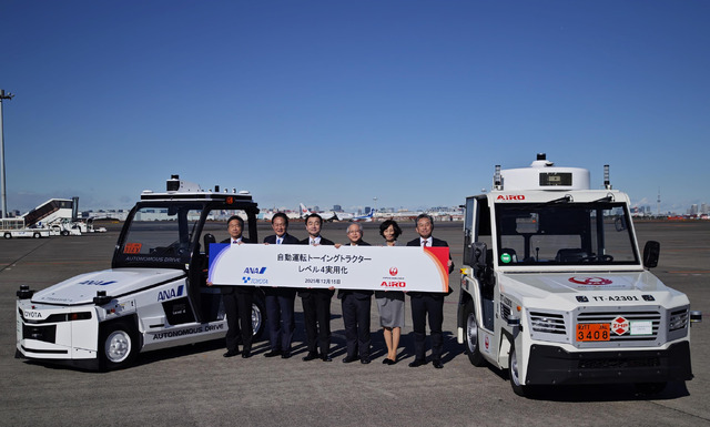 12月15日、国土交通省航空局、全日本空輸(以下、ANA)、日本航空(以下、JAL)、豊田自動織機、AiROは、羽田空港および成田空港の制限区域内において、自動運転レベル4(特定条件下における完全無人運転)に対応したトーイングトラクターの実用化を開始したと発表しました。国内の主要空港で同時にレベル4の実用化が行われるのは初の事例となります。