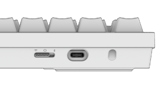 製品によっては、接続やOSごとの切り替えまでキーボードショートカットで、メーカーごとに違う組み合わせやアイコンの意味を覚えたり、いまどの状態なのか分かりづらいといった苦労がありますが、K65 Plus Wireless は独立した物理スイッチで確実に切り替えでき、キーボード面左上のステータスインジケータでも確認できます。