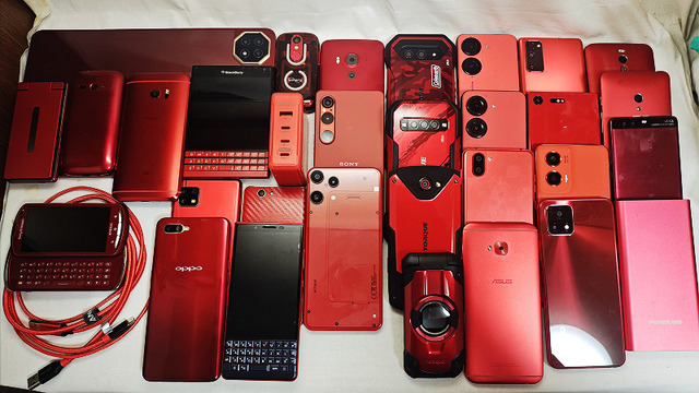 ▲筆者が集めている赤い端末ファミリー(写真は一部)に早速仲間入り