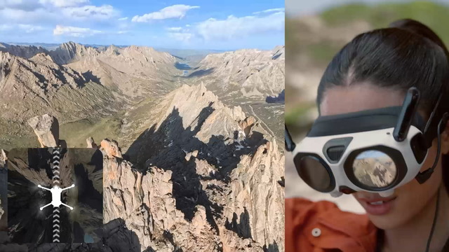 対するAntigravity A1はカメラの向きの概念がないため、ゴーグルを装着して真下や真上を見ても、首を左右に180度振って見渡したり不意に振り向いても、ドローン本体が回ったりカメラが物理的に向きを変えるための遅延がなく、自然なプレゼンスの感覚が得られます。