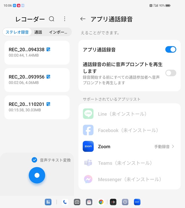 ただし、対応しているアプリがやや限定されている点には注意が必要です。上記のようなビデオ会議アプリの場合、ZoomとマイクロソフトのTeamsは録音ボタンが表示される一方で、グーグルのMeetやCiscoのWebexはサポートされているアプリリストに表示されませんでした。また、LINEやFacebookのMessengerには対応している一方で、XやInstgramのDMでの通話も録音が難しいようです。こうした点は、ソフトウェアアップデートでの進化に期待したいところです。
