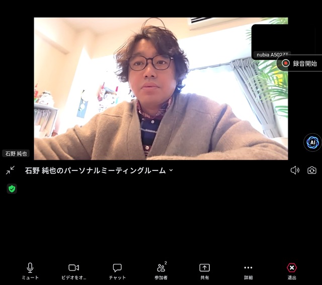▲Zoom利用時にも、上記と同じ録音ボタンが表示された