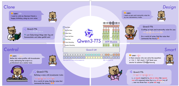 Qwenチームが発表した「Qwen3-TTS」は、多機能なテキスト音声合成モデルです。500万時間を超える音声データで訓練されており、参照音声から声のクローンや、自然言語による新しい声の作成・細かな調整が可能です。