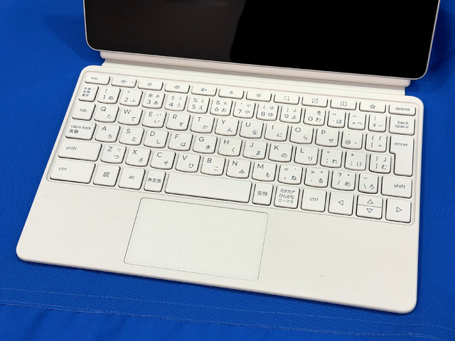 オプションのキーボードはマグネットで装着するタイプで、タッチパッドも備えています。