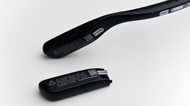 長時間、利用することの多いワイヤレスヘッドフォンも同様にケースで充電できますが、充電中は片耳、もしくは両耳が使えなくなります。しかし、このスマートグラスは眼鏡をかけたまま、交換時だけは顔から外す必要があるものの、バッテリーを交換すれば使い続けられるわけです。この設計はなかなかいいですね。