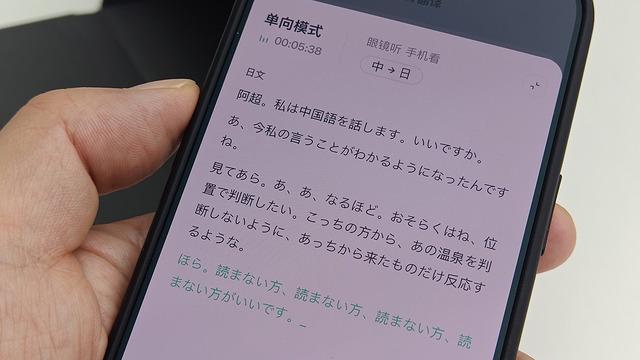 気になるAI性能ですが、AIアシスタント「Qwen App」を利用できます。これはアリババが開発した大言語モデルの「Qwen」をベースにしています。操作は音声と本体の弦の部分のボタンを使いますが、多少騒がしい場所でも音声への反応は良好でした。周囲の店舗の案内やルート検索なども音声で的確な指示が受けられます。会議の音声の要約、リアルタイムの翻訳にも対応。実際に中国人の知人と会話しましたが相手の言うことがしっかりと音声に翻訳されます(翻訳内容はスマートフォンアプリでも確認可能)。