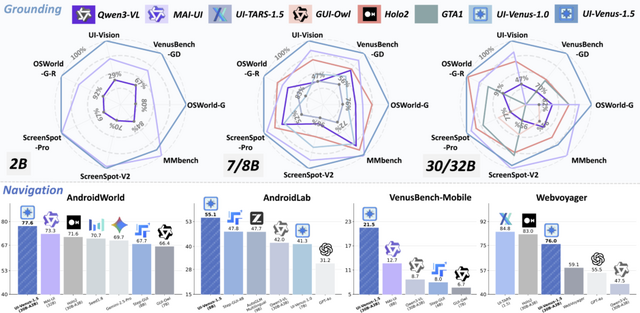 ベンチマークではScreenSpot-Pro 69.6%、AndroidWorld 77.6%、WebVoyager 76.0%など多数で最高性能を達成し、8Bモデルが前世代72Bを上回る効率性も示しました。