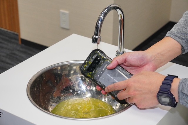 ほかにも、高さ1.5mからの落下直後に浸水させる「落下×防水」試験や、同じく高さ1.5mからL字型鉄アングルに落下させる「L字落下」など、もはやスマホの耐久テストとは思えない拷問──もといテストを行い、最多となる37項目を達成しています。MIL規格に加えて京セラ独自の試験項目も設けて、より高い耐久性を目指しているといいます。