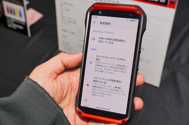 具体的には、上部にアップリンク用のアンテナを追加。下部のアンテナと自動で切り替えを行う「ASDiv」という技術に対応し、衛星との接続をより維持しやすくする性能を実現しています。TORQUEと言えば、アウトドアでの用途をイメージしやすい端末ですが、だからこそau Starlink Directへの対応はうれしいポイント。通信サービスと端末がしっかり融合しているのは、さすがキャリアモデルといったところです。