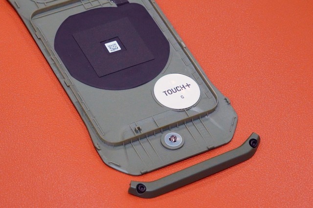 このバッテリーケースの裏には「タッチプラス」という名称のNFCタグが仕込まれています。これは、TORQUE G07で読み取れる専用タグで、ホーム画面のテーマをガラッと変えたり、カメラを特定のモードで起動したりといったことに使えます。バイクにタグを張っておき、各種センサー情報を表示したまま撮影するアクションオーバーレイを起動するといったことも可能というわけです。