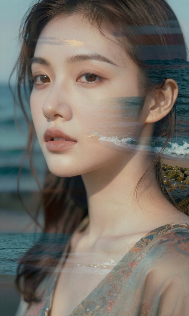 二重露光のポートレートだがBaseは流石。Z-Image-Distilledは悪くないが顔が変わる。8-Steps_ComfyUI_v1は硬調。8-Steps-2602_UDCAI_ComfyUIはBaseに近いといえば近い。