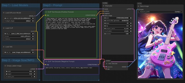 となる。プロンプトの書き方は、Danbooru系のタグベースPromptが基本で(自然言語でもOK)、(リアル系を除く)SDXLからの置き換えを狙っている感じだろうか。LoRAはお馴染みkohya-ss/sd-scripts対応済み。WorkflowはComfyUIのテンプレートに用意されている(要Update)。特殊な部分はなく、Negative Promptありで30 Steps/CFG 4.0となっている。