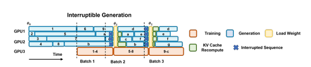 現在、大規模言語モデル(LLM)の推論能力を高めるために強化学習が広く使われています。しかし、従来のシステムは複数の文章を生成する際、一番長い文章の完成を待ってからまとめてモデルの学習を行っていたため、GPUに無駄な待機時間が発生し、計算効率が悪いという課題がありました。
