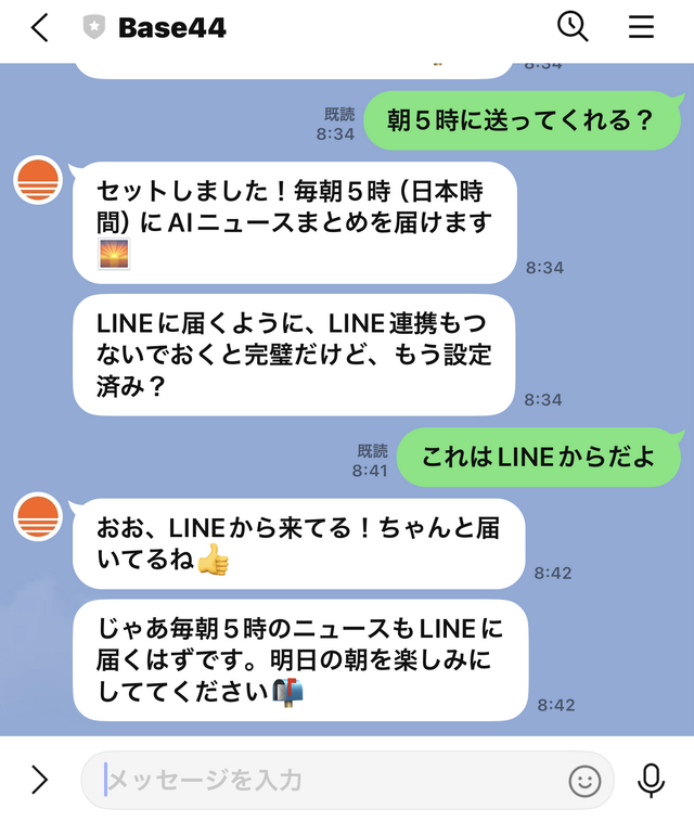 ▲LINEチャットで指示を出し、結果を返してくれる