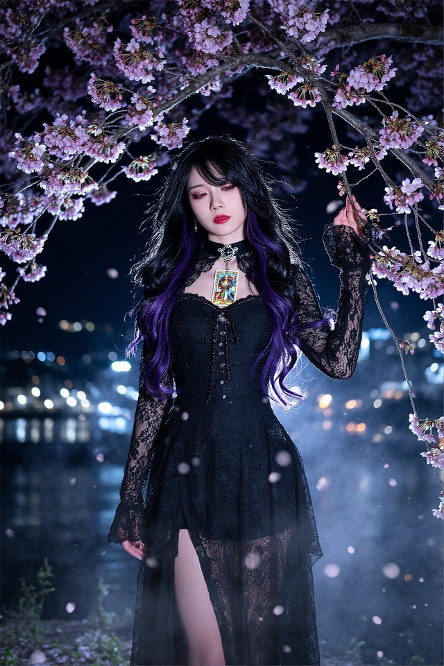 グラビアは、先の-i 10の別シーン”春、夜桜、sexy”となる。ただそのままだとアニメ絵になるため”photorealistic, 8k, raw photo, shot on 35mm lens, depth of field, bokeh, film grain, bokeh”を加えた。