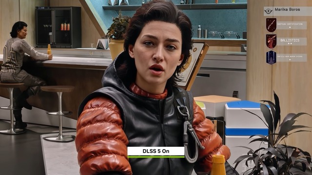 ライティングやマテリアルはゲームの見た目を決定する大きな要素ですが、従来のDLSSはあくまで補間的であり、元の表現を意図的に変えるものではありませんでした。しかしDLSS 5では、明らかに表現まで踏み込んだ変化が見て取れます。肌や顔のディテール、ライティング、服に小物に背景まで、確かにいわゆる写実性が向上した質感で上書きされています。別物のように。