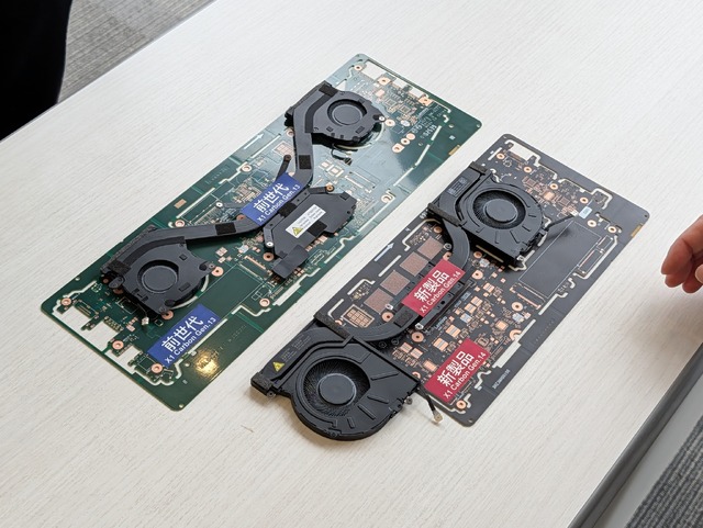 3D積層でレイアウトを改善し、冷却機構の大型化で性能と静音性向上、ヒンジ小型化でタッチパッド大型化、メンテナンス性の向上を実現しました。
