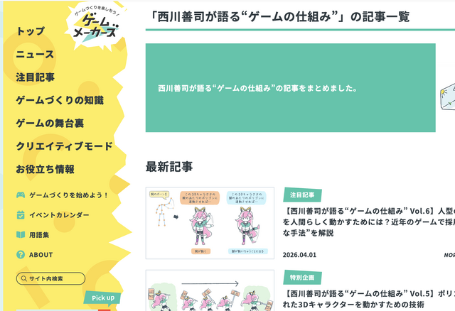このゲームメーカーズは、ゲーム関連メディアの中にあって、かなり特徴的な媒体でして、ゲーム開発を行っている人、ゲーム開発に関心がある若者や学生に向けて展開されているオンラインニュース媒体。