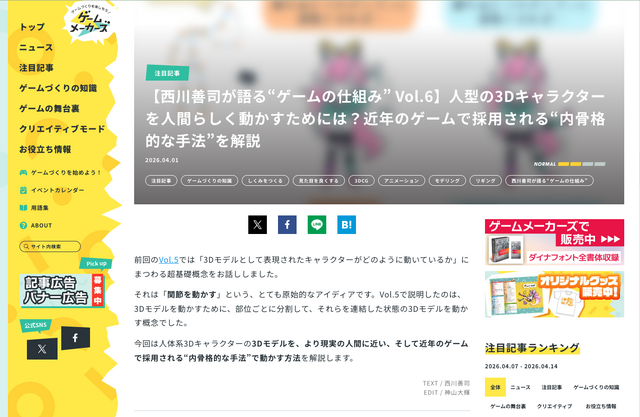 筆者は、いくつかの媒体で連載を持たせていただいていますが、結構、いろんな人の手間が掛かっているのが、こちら、ゲームメーカーズという媒体の連載です。
